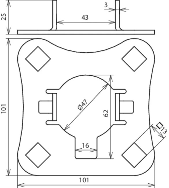| Csatlakozólemez tartó | Négyszögletes furat 13 |