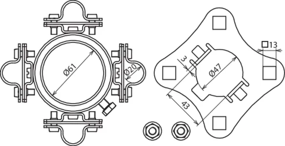 | Csatlakozólemez tartó | Négyszögletes furat 13 mm |