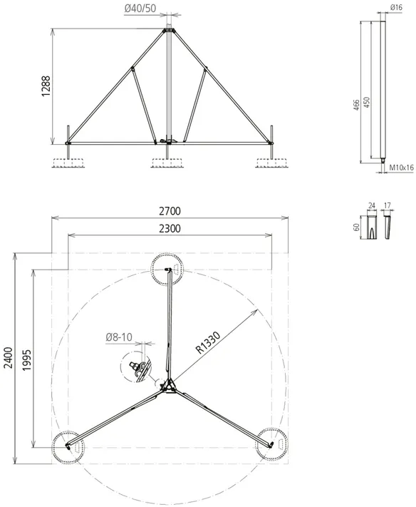 | Állvány helyigénye | 2300 x 1995 mm |
