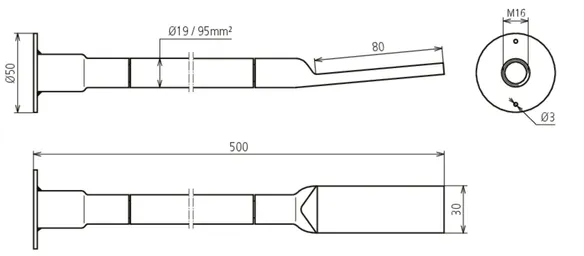 A földelő áthidalók vasútvonalak használati területén földelésre, visszáramvezetésre, valamint potenciálkiegyenlítésre szolgálnak. A nagycsöves földelés változata cölöp- és nagycsöves alapoknál van alkalmazásban. A termék rápréselt hüvelyű rézkábelből áll NIRO csatlakozólemezzel, integrált furatokkal a zsaluzatrögzítéshez az egyik végén, valamint egy kábelsaruval az azzal szembeni végén. A kábelsaru feladata rövidzárlatbiztos kapcsolat létrehozása a cölöp- és nagycsöves alaphoz. A kábel flexibilitása megkönnyíti a felhasználónak a beszerelést a vasalásba. A földelő áthidaló rendelkezik emellett a DB Netz AG műszaki jóváhagyásával és ezért ott tervezési biztonsággal felhasználható.