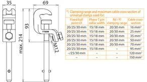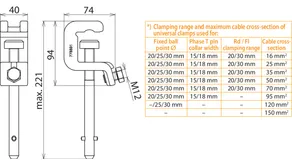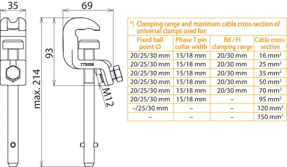 | *) lásd a befogási tartomány és max. sodronykeresztmetszet univerzális kapcsok számára táblázatot | |