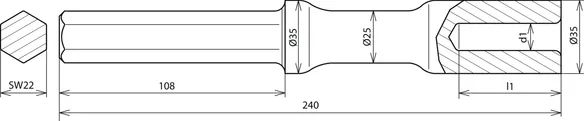 | Fogadó | hatszög laptáv SW22 x 108 mm |