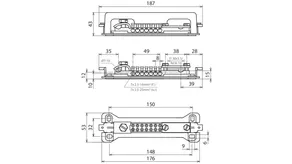 Csatlakozás (egyhuzalos u / többhuzalos r / finomsodrat f): 7 x 2,5-25 mm2 (vezetőtípus u, r); 7 x 2,5-16 mm2 (vezetőtípus f)