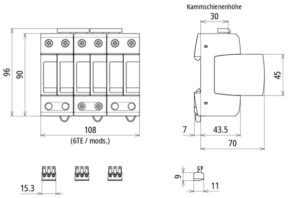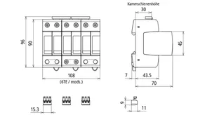 | Levezetési áramimpulzus (10/350 µs) (Iimp ) | 5 kA |