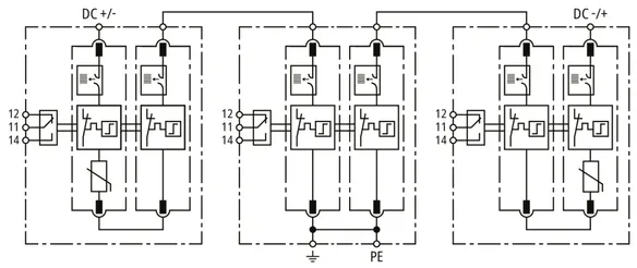 | Legnagyobb folyamatos üzemi feszültség DC [(DC+/DC-) --> PE] (UC ) | 625 V |