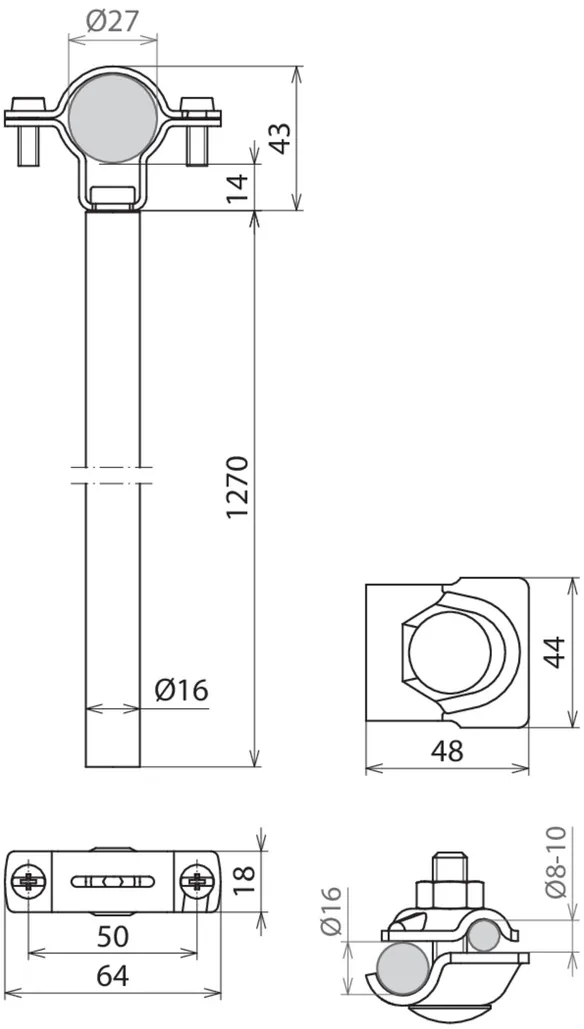 | Vezetéktartó fogadó Rd | 27 mm |