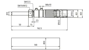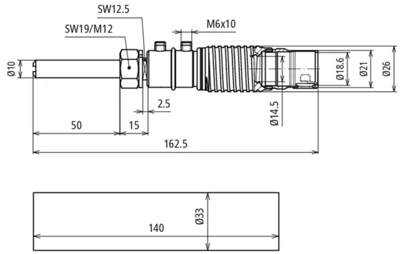 Csatlakozás: Csap Ø10 mm, L 50 mm M12 menettel rugós alátéttel