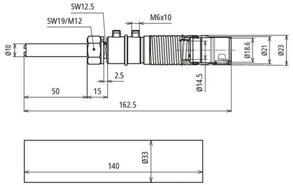 Csatlakozás: Csap Ø10 mm, L 50 mm