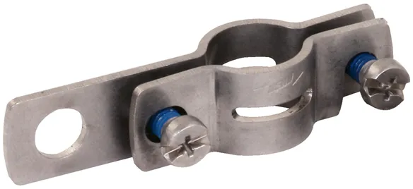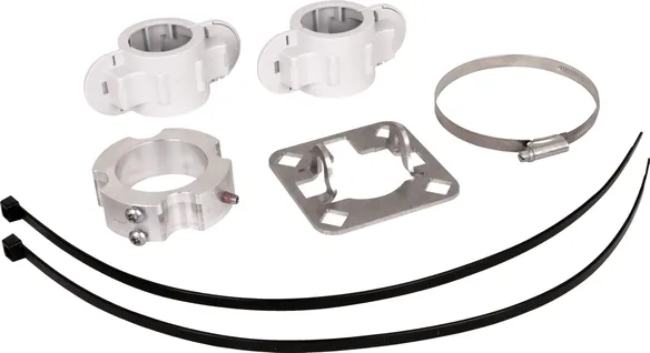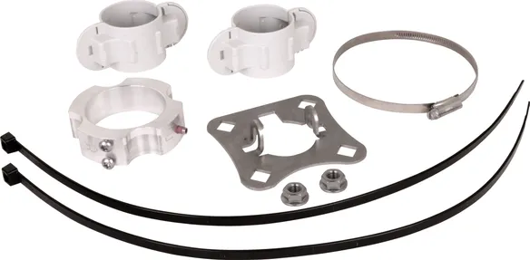 Rögzítőkészlet a HVI light plus vezeték szereléséhez HVI tartócsövekre Ø50 mm, részei csatlakozólemez és rögzítőgyűrű NIRO-bilinccsel a végelzáró számára (négy műanyag tartó féllel és két kábelkötözővel).