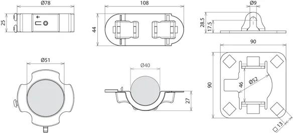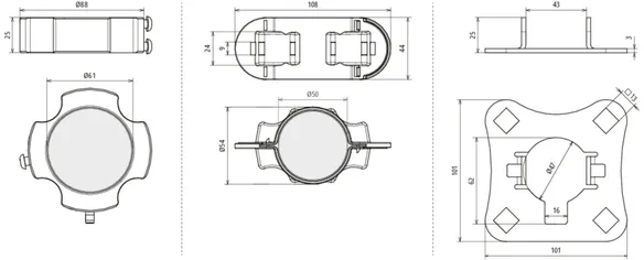Csatlakozólemez (négyszeres) a HVI light plus vezeték szereléséhez tartócsőre Ø40 mm (pl. 105 672, 105 673, 105 677, 105 678 cikkszám).